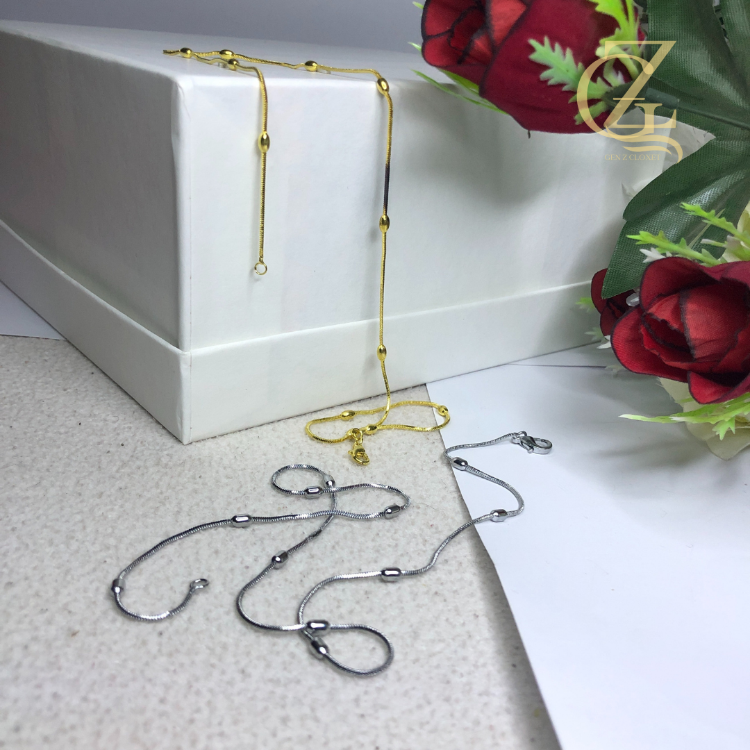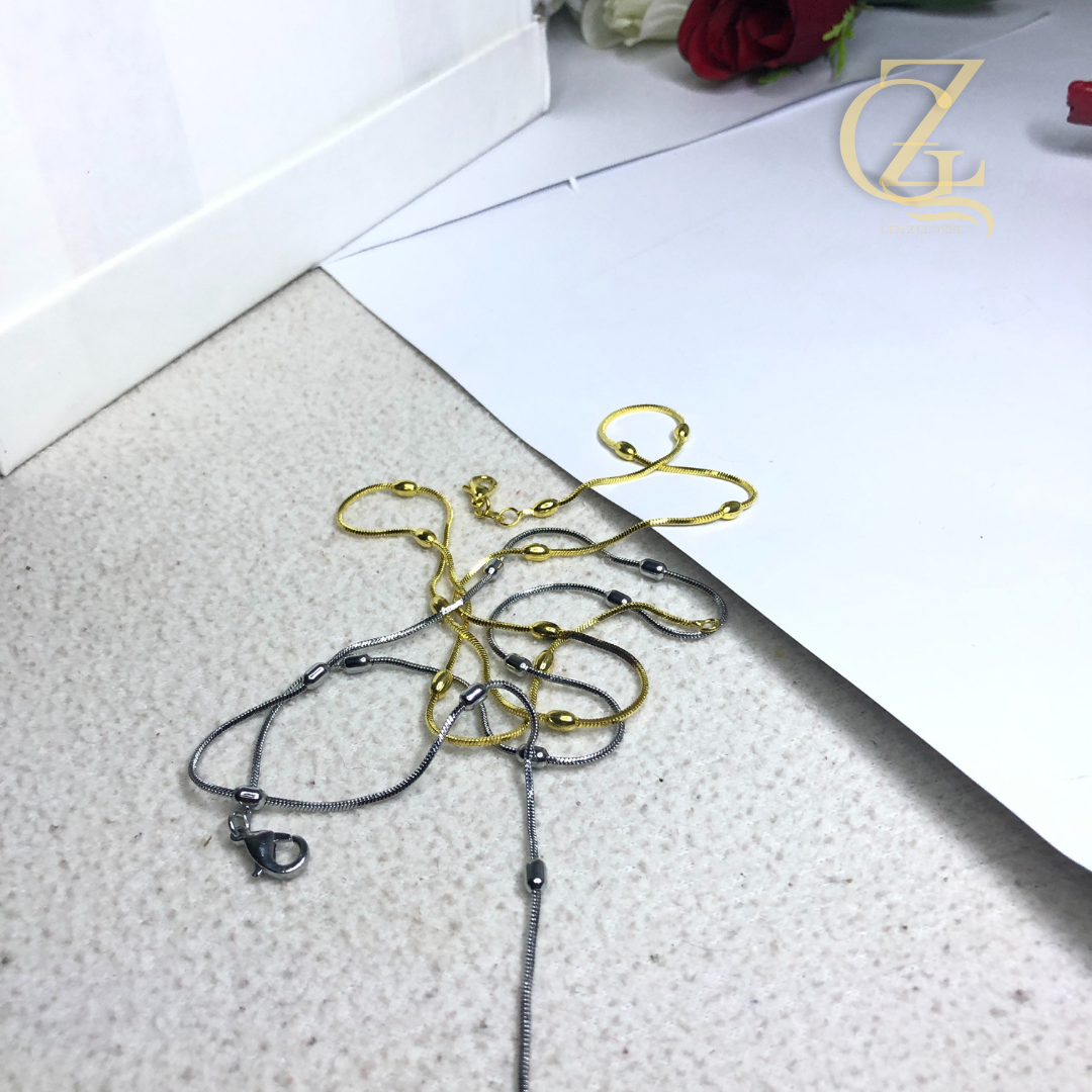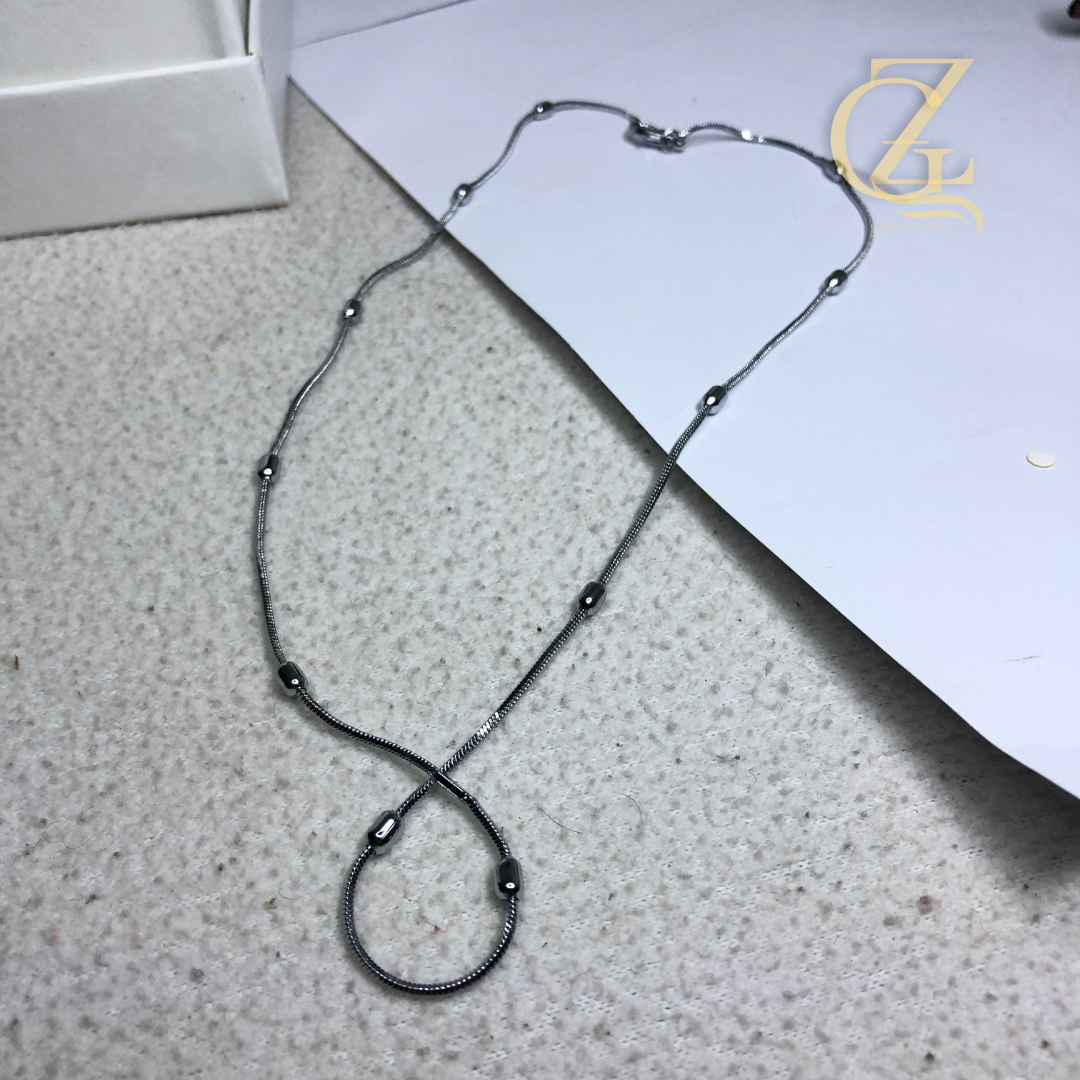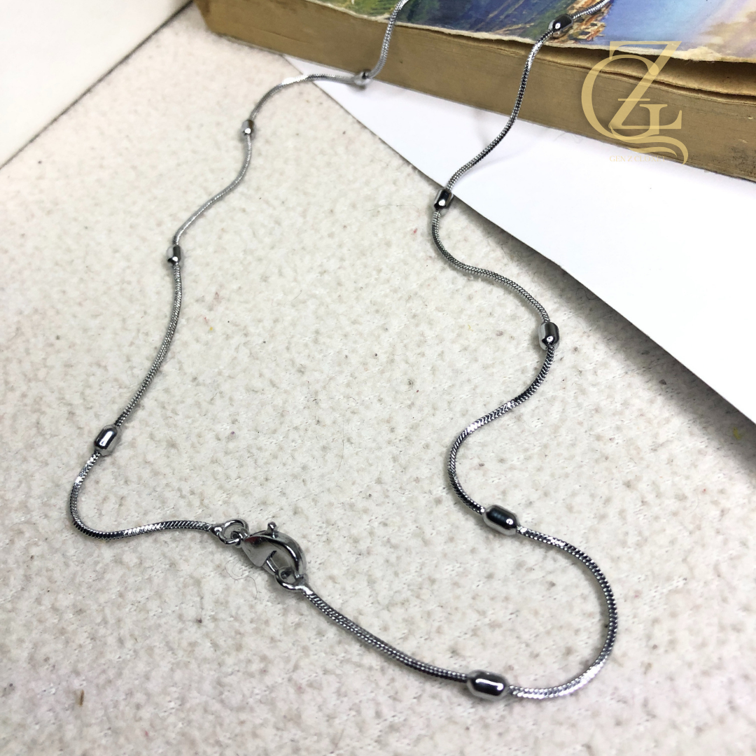 Elevate your daily “fit” with our signature Snake Chain Locket. Designed for the minimalist who hates basic jewelry, this piece features a high-shine, fluid snake chain accented with polished silver beads. It’s not just a necklace; it’s the base layer for your entire aesthetic. Whether you’re layering it with chunky chains or wearing it solo over a baby tee, it gives that effortless “clean girl” energy.
