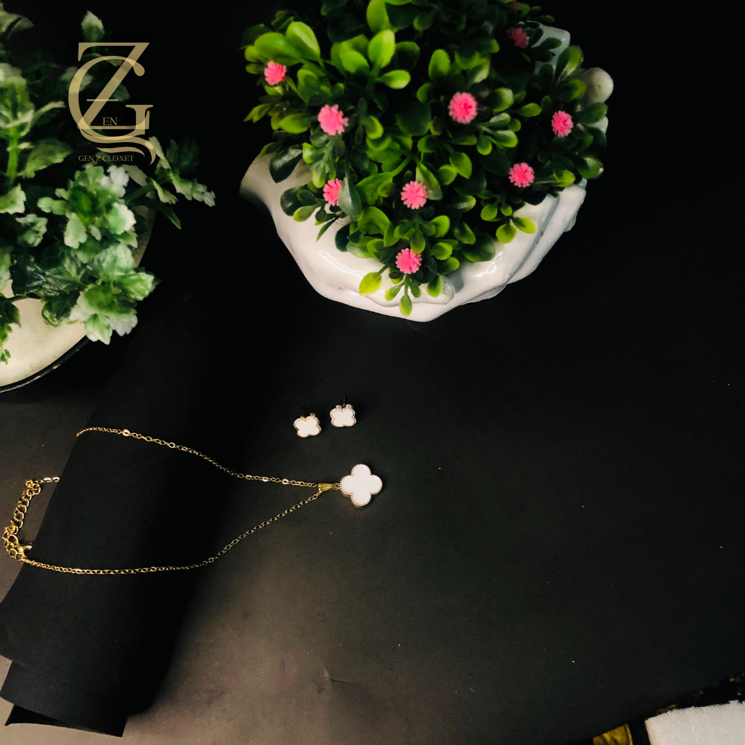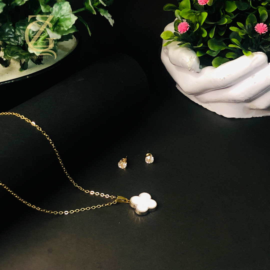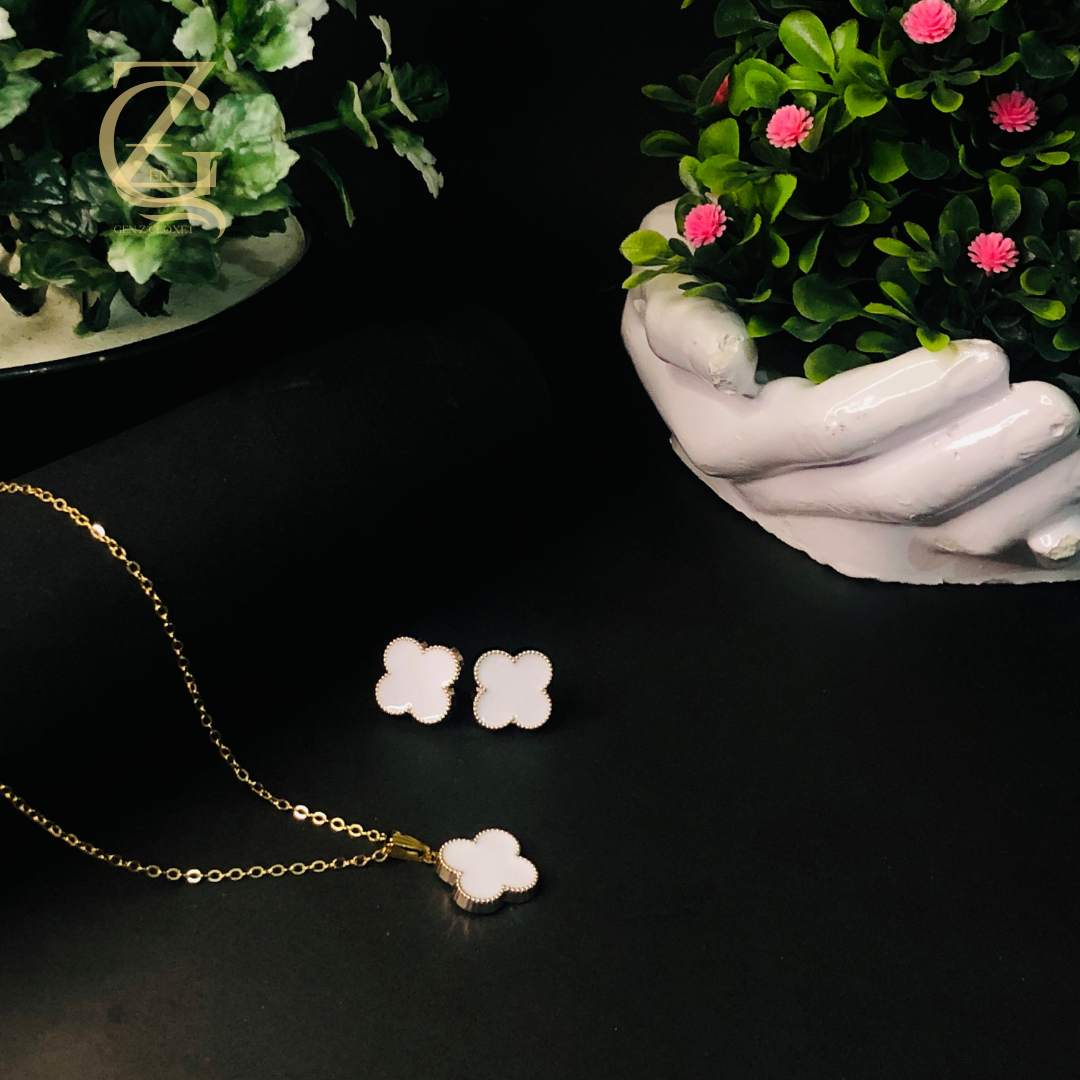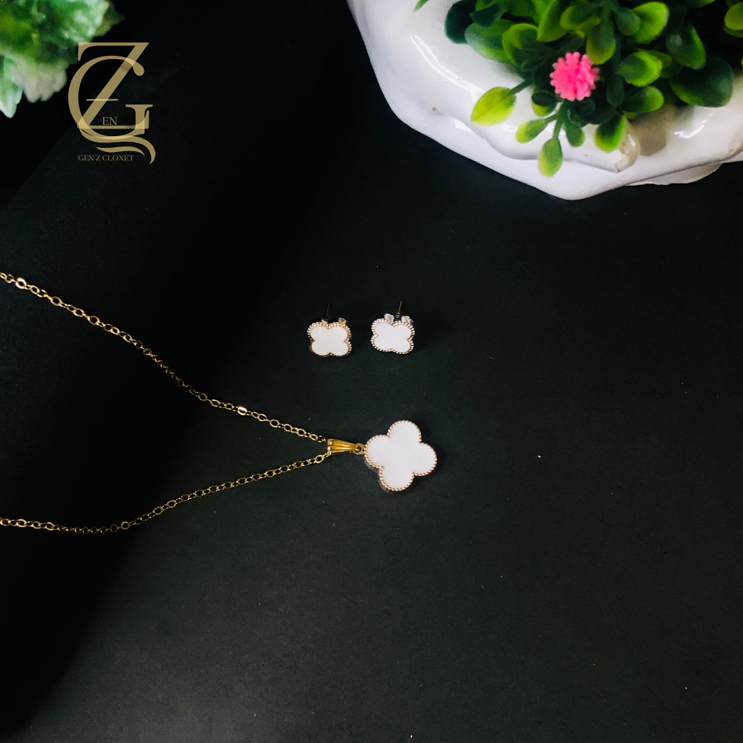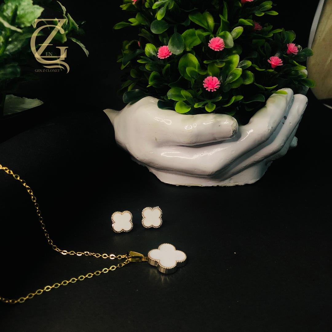 Clover White locket set