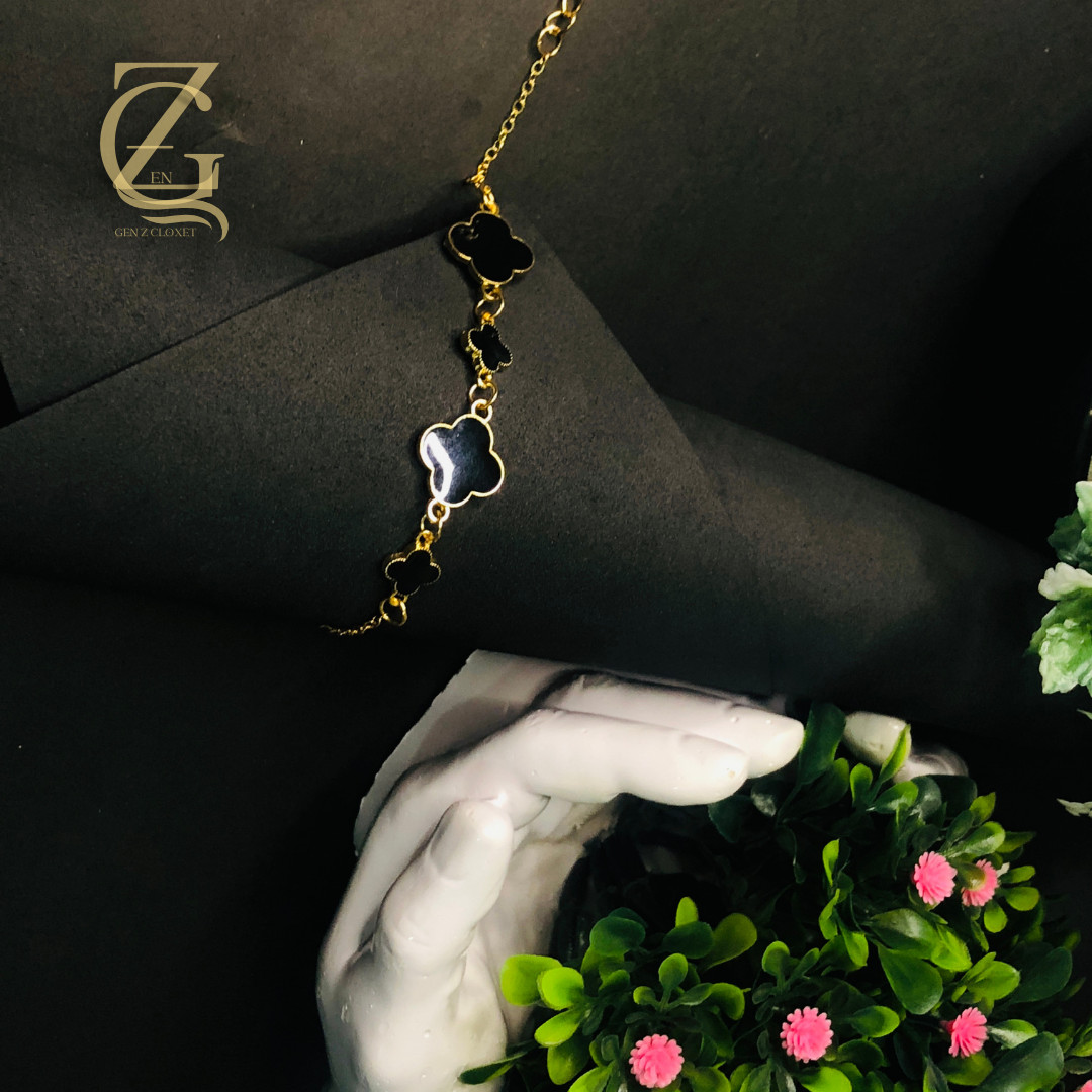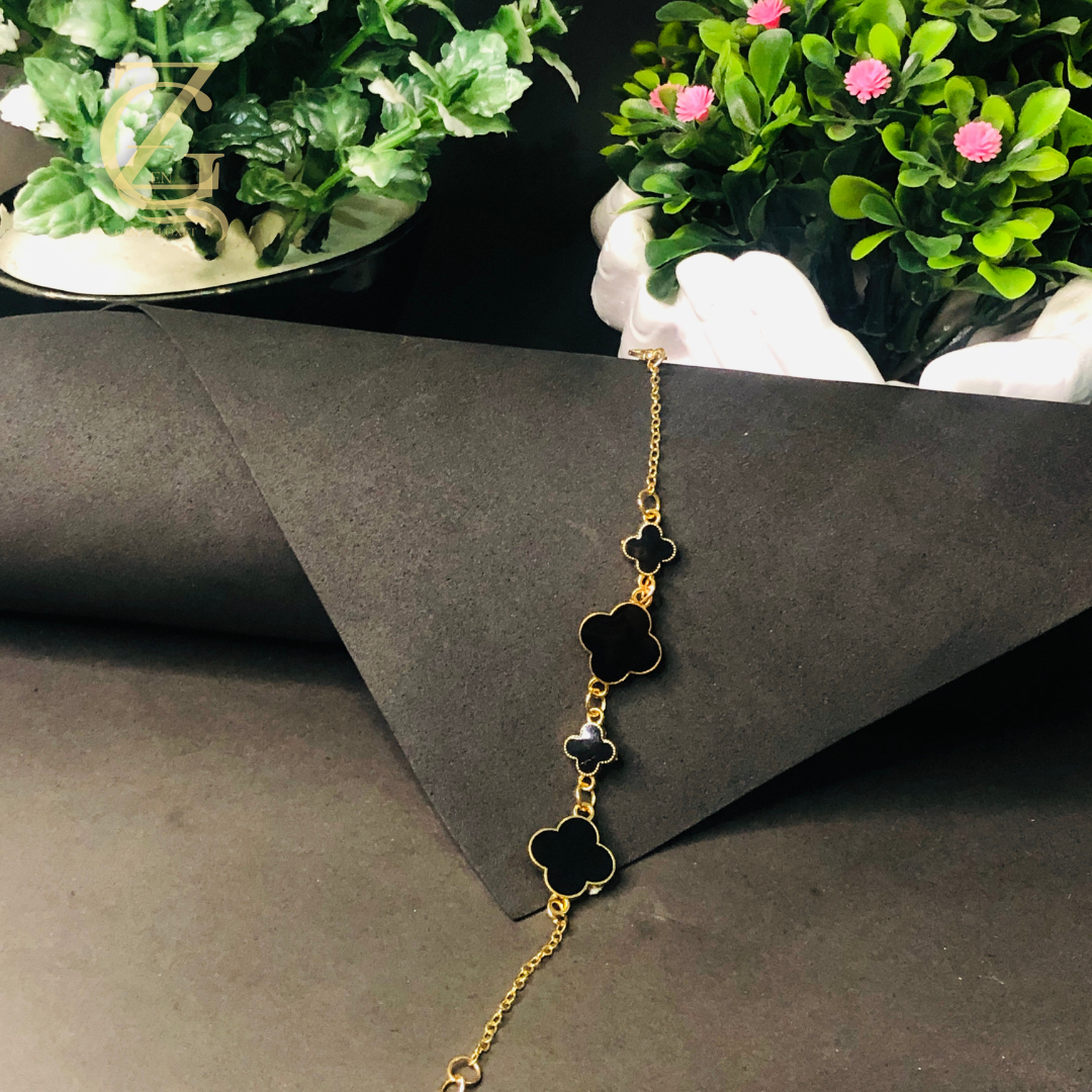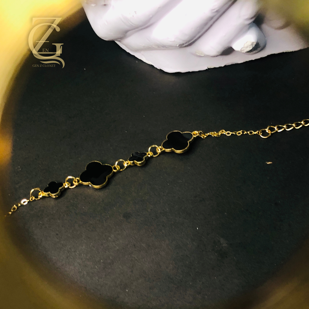 Gold Plated Black Clover Bracelet Lucky Charm