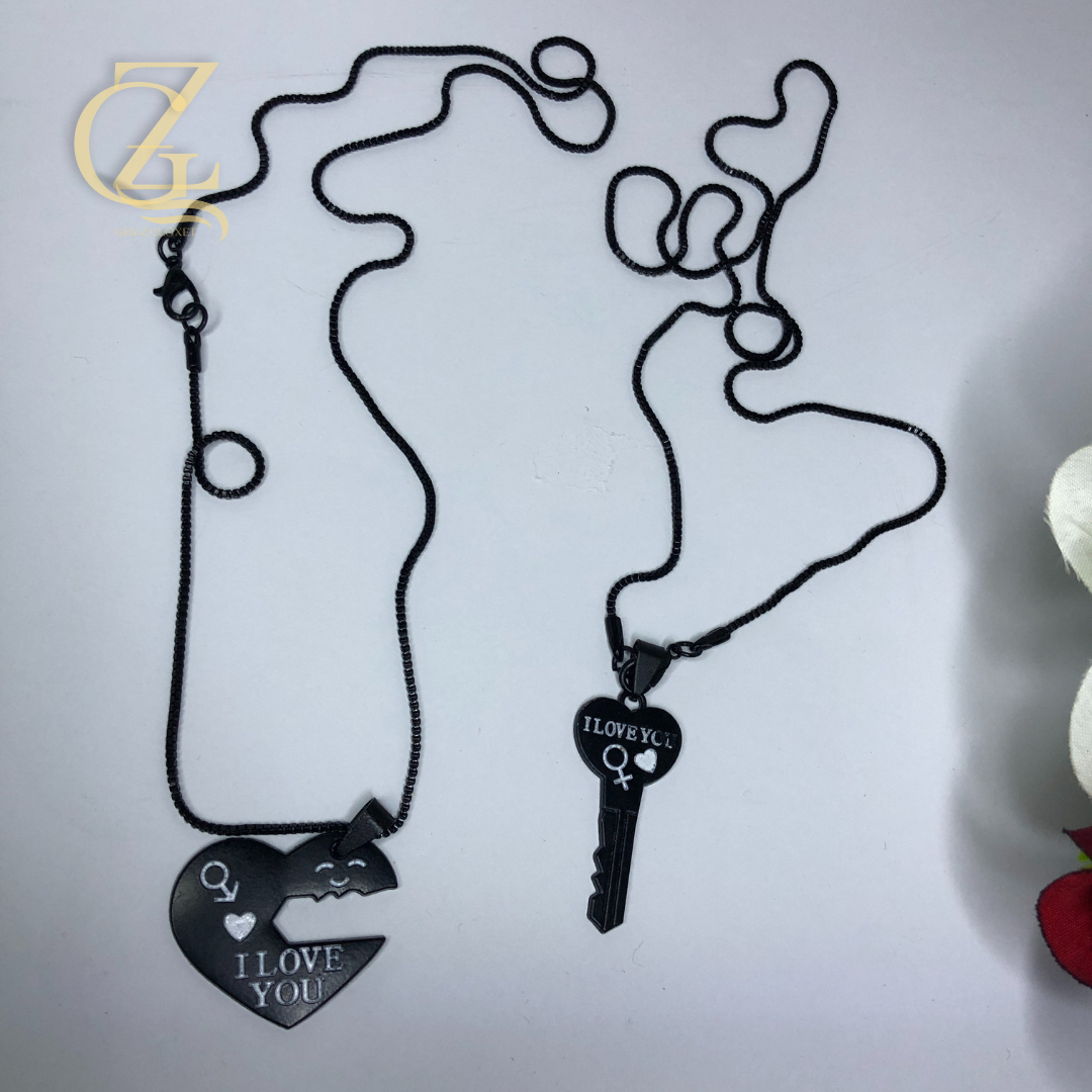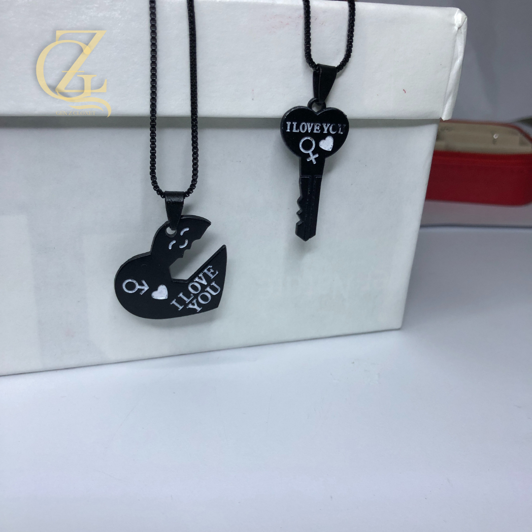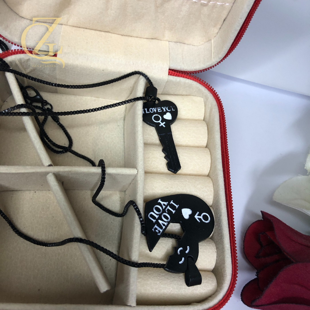 Unlock My Heart” Matching Couple Necklaces – Black Heart & Key Locket Set | Gen Z Cloxet