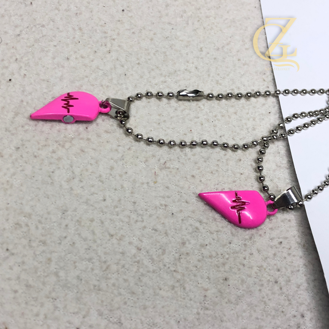 Magnetic Heartbeat Couple Necklace Set – Hot Pink Matching Relationship Pendants