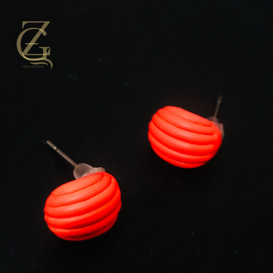 Neon Red Ribbed Stud Earrings Vintage 80s Style