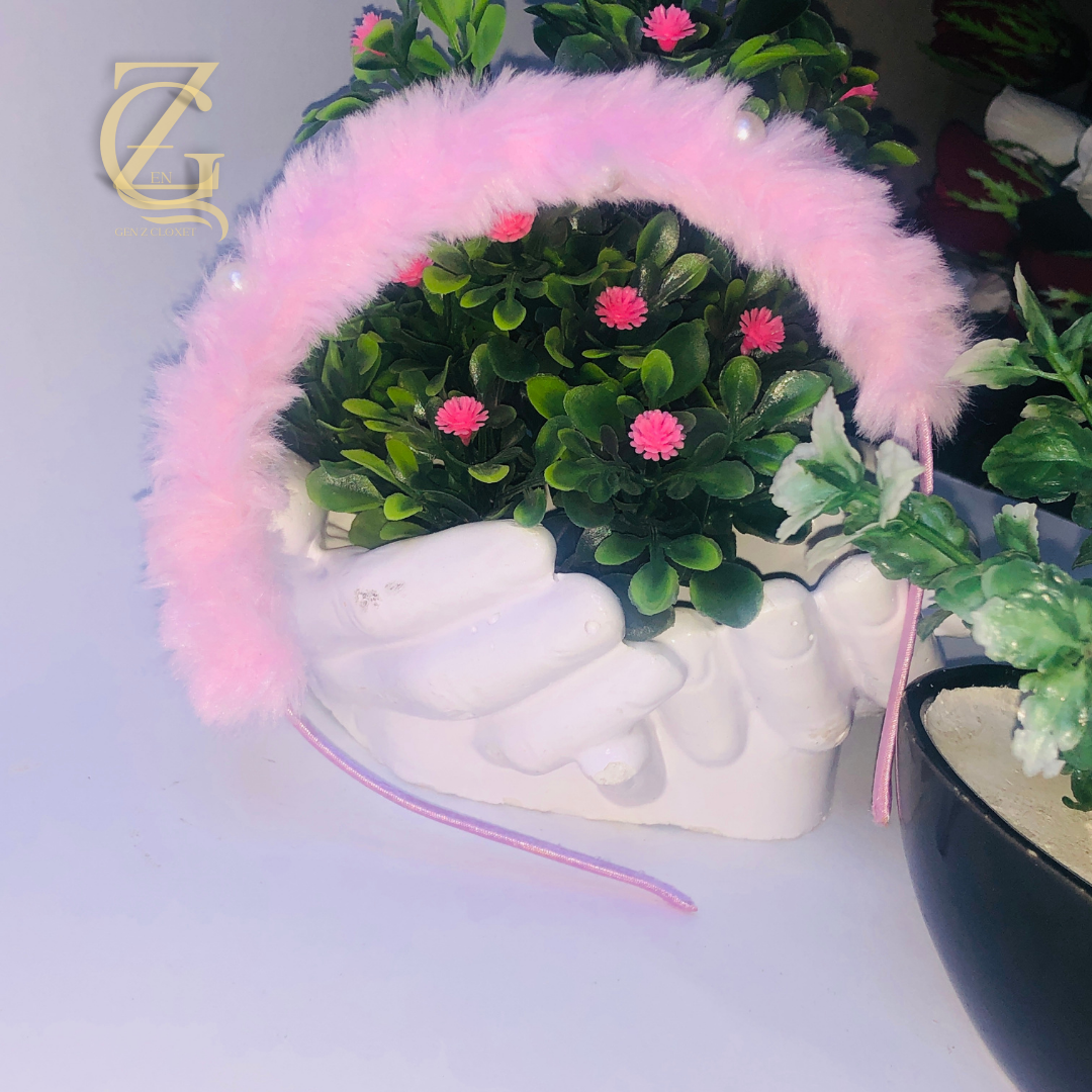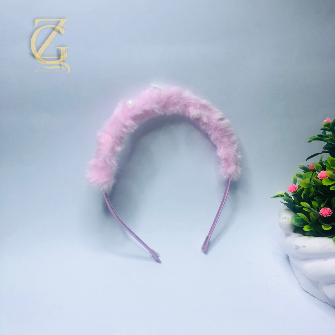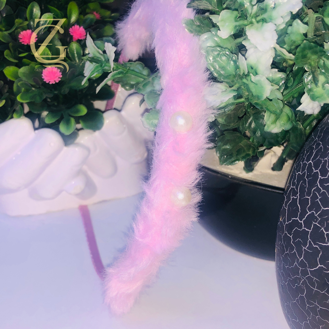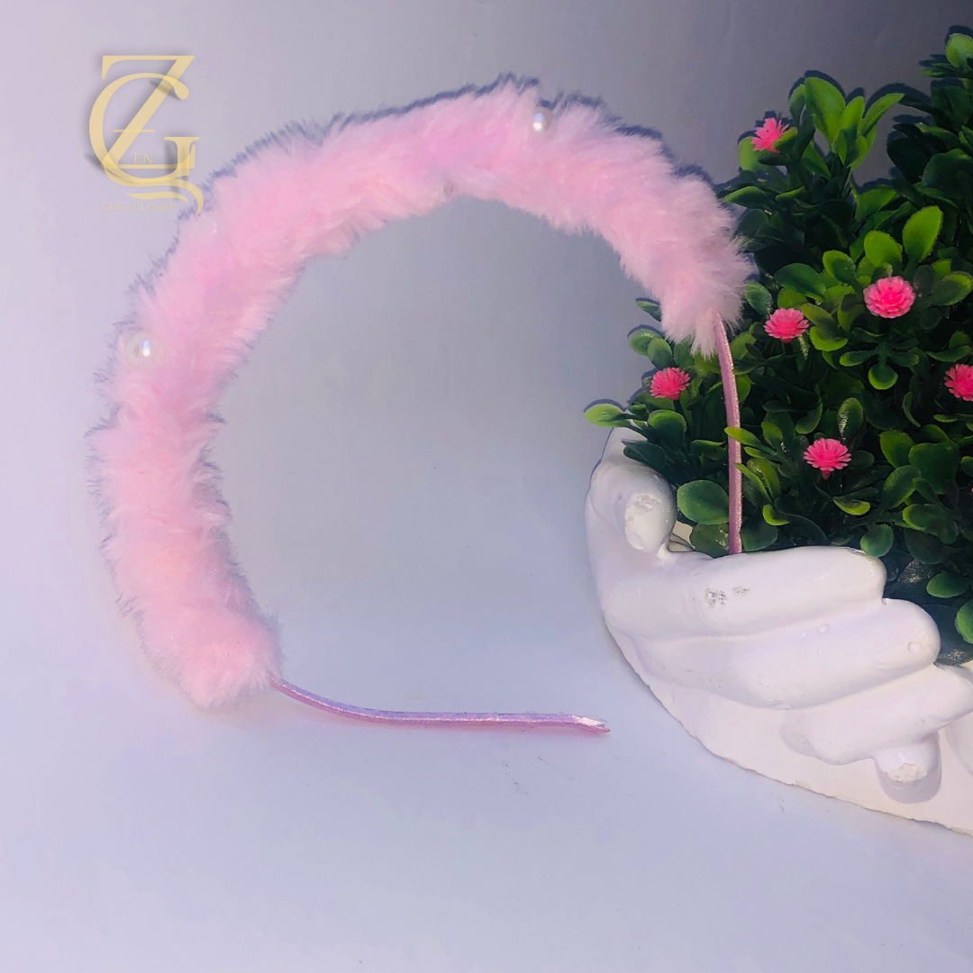 Gen z cloxet Pink Faux Fur Pearl Headband Wide & Soft