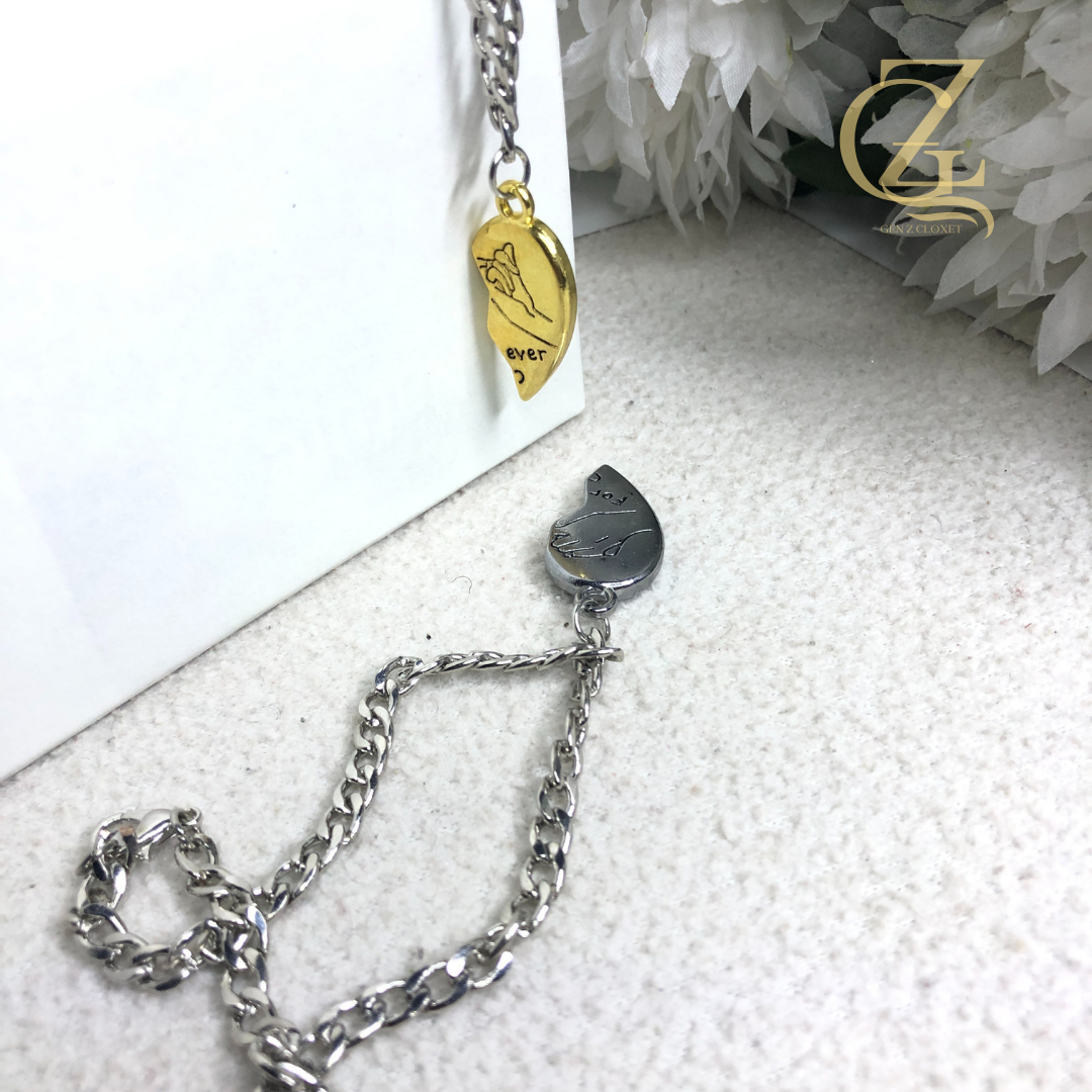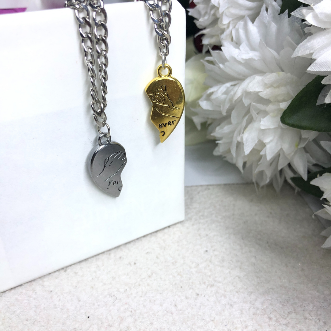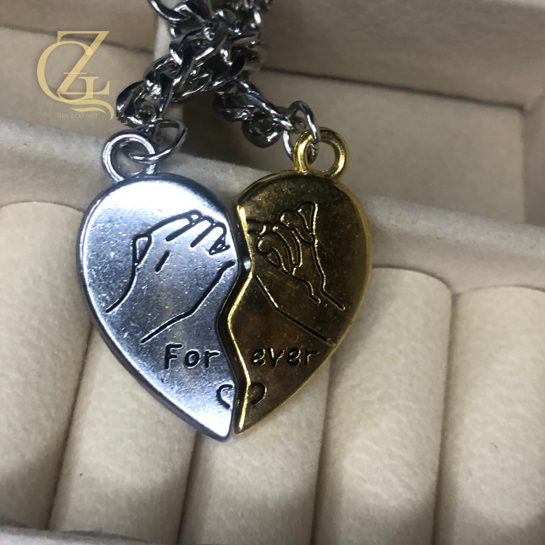 Featuring a unique split-heart design with a “Pinky Promise” engraving, one half comes in a sleek Silver finish and the other in a bold Gold finish. Together, they form a complete heart—just like you and your person.