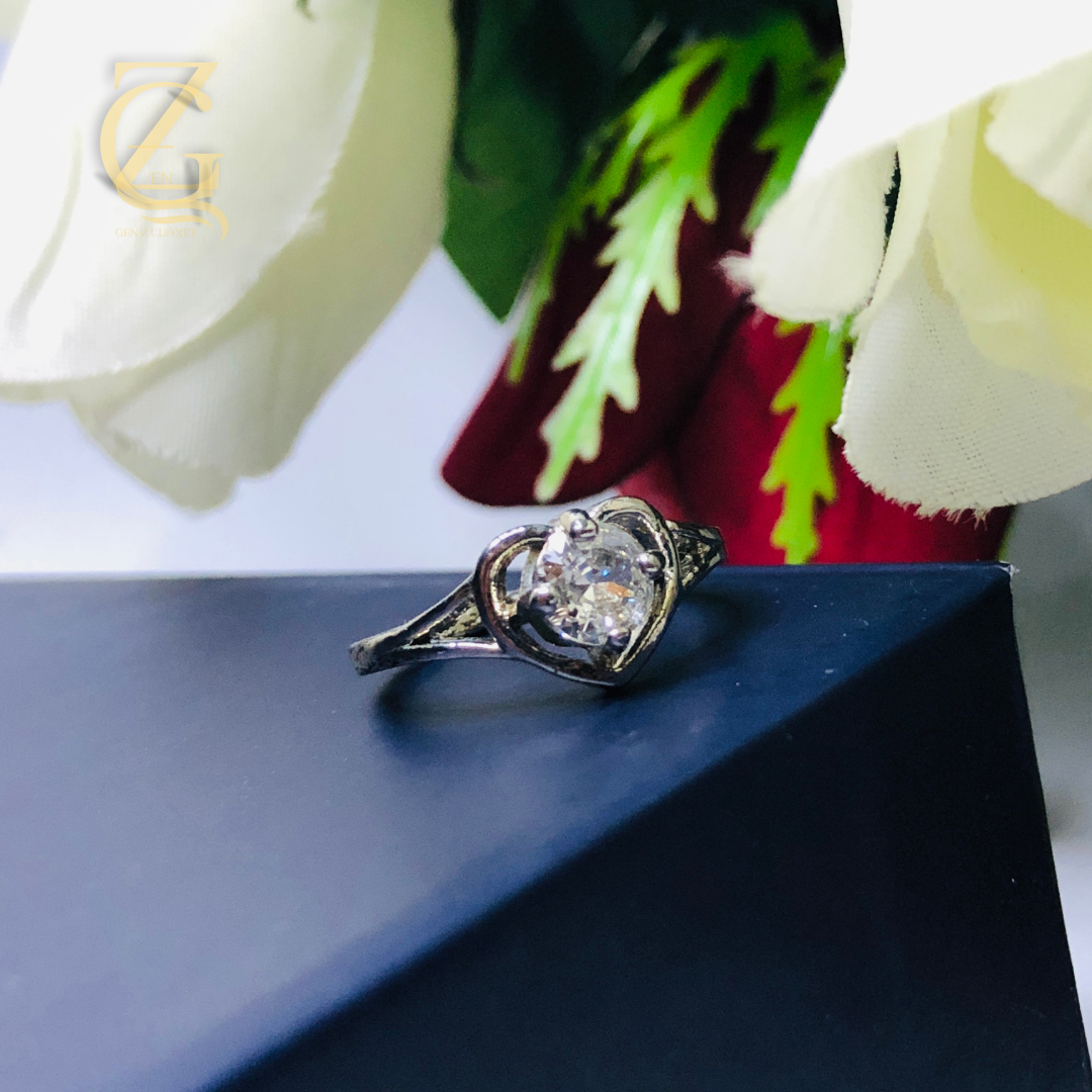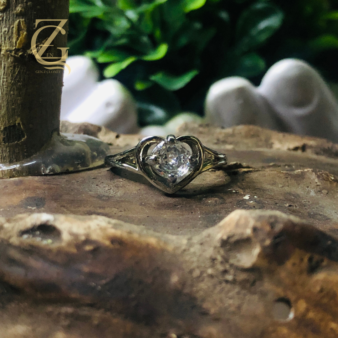 silver-plated heart-shaped ring