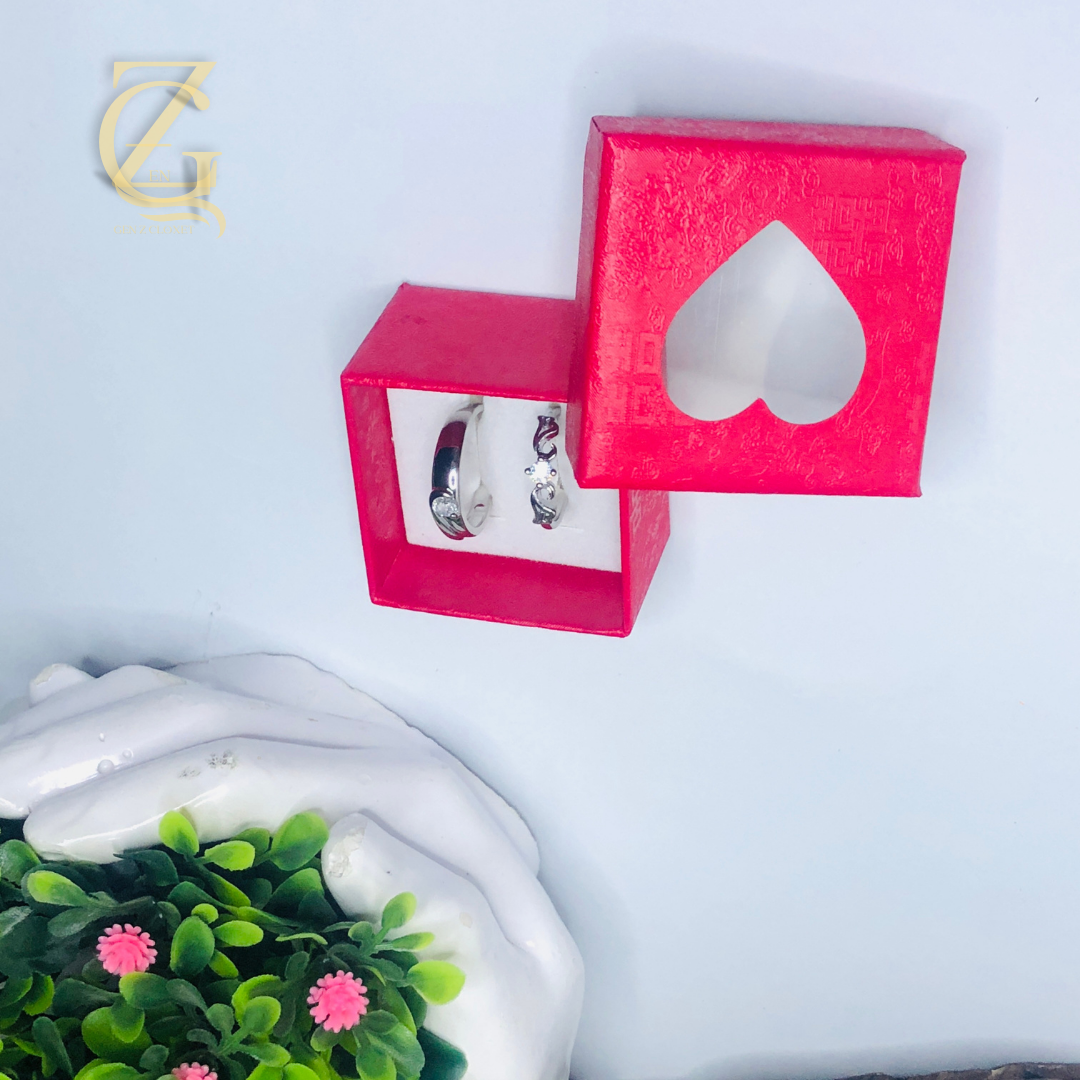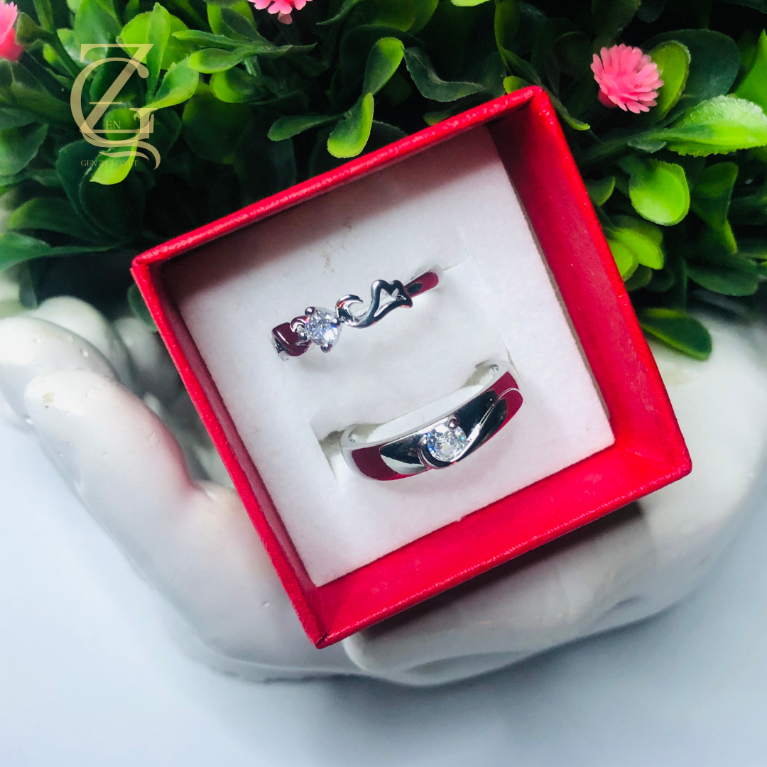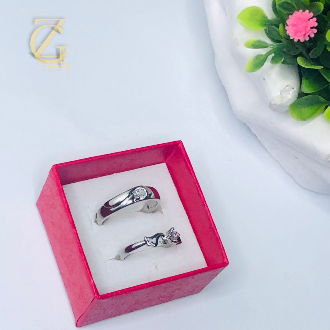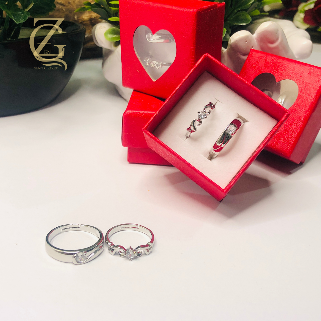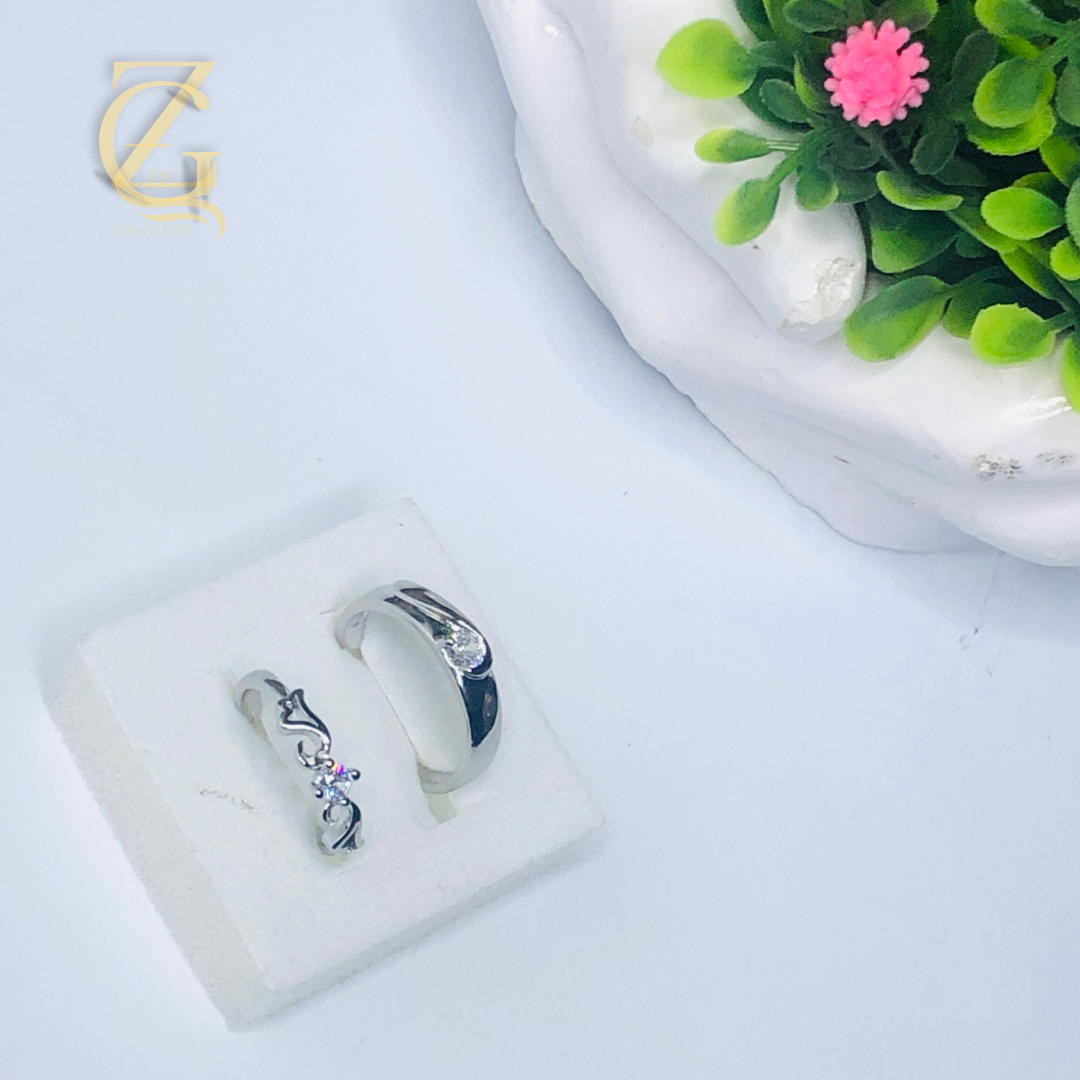 silver-toned couple ring