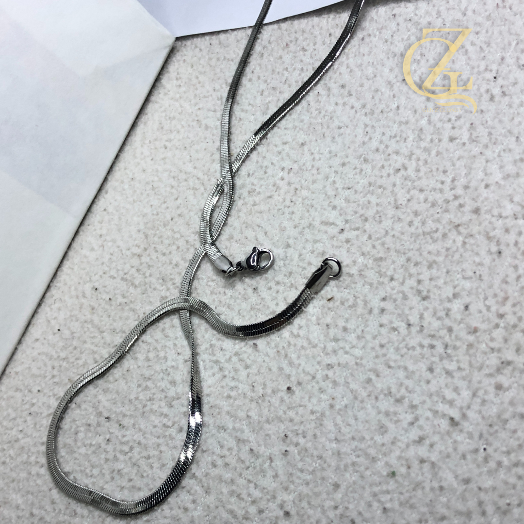 The Sleek Minimalist Add a touch of liquid silver to your look with our flat herringbone snake chain. High-shine, tarnish-resistant, and designed to sit perfectly against your skin for effortless daily elegance.
