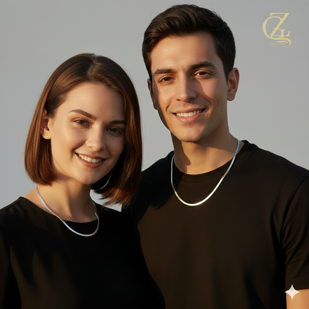 Elevate your everyday style with our Silver Herringbone Snake Chain. Designed with a flat, fluid silhouette, this necklace sits perfectly against the skin, offering a “liquid metal” glow that transitions seamlessly from day to night. Whether worn as a bold solo statement or layered with your favorite pendants, its minimalist aesthetic makes it a jewelry box essential.