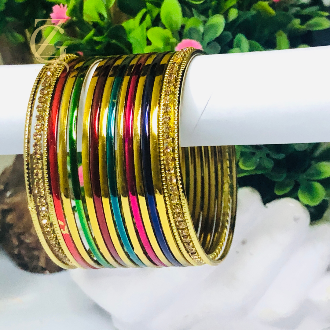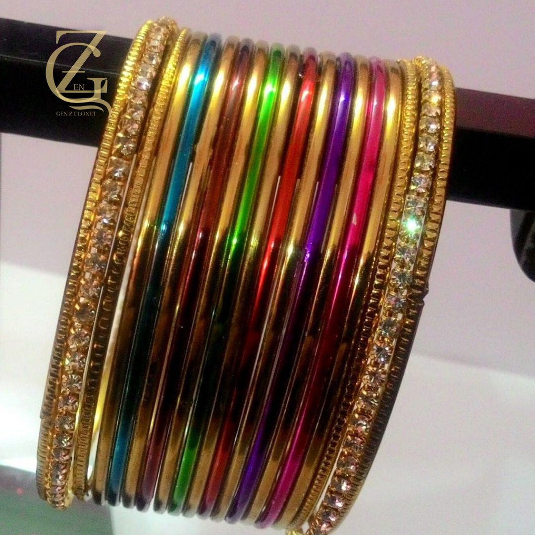 Featuring multi-color churiyan along with a matching Kara, this set is ideal for weddings, festive occasions, parties, or everyday ethnic wear. Lightweight and durable, they are designed for comfortable all-day wear while giving you a bold and stylish statement.