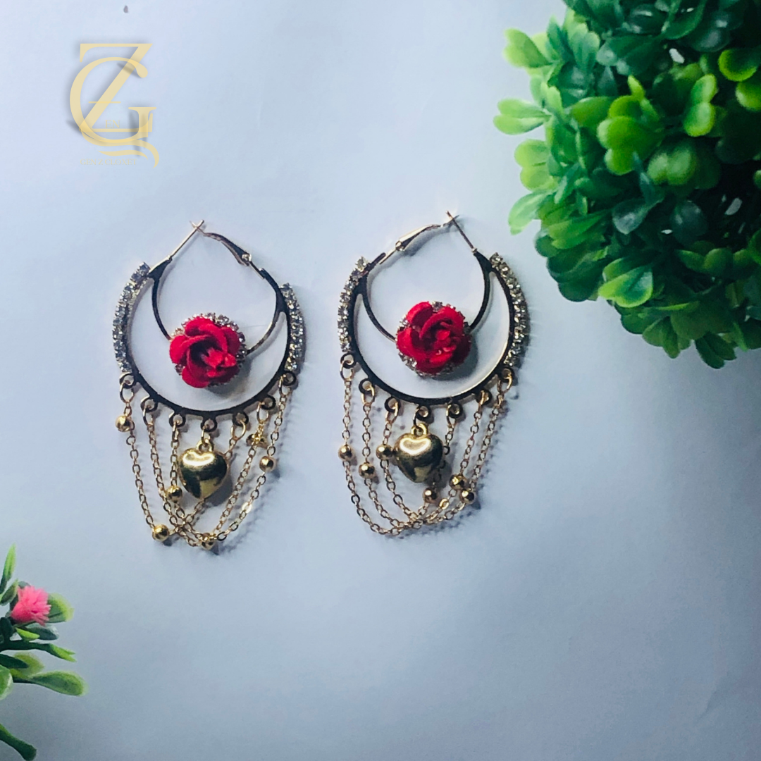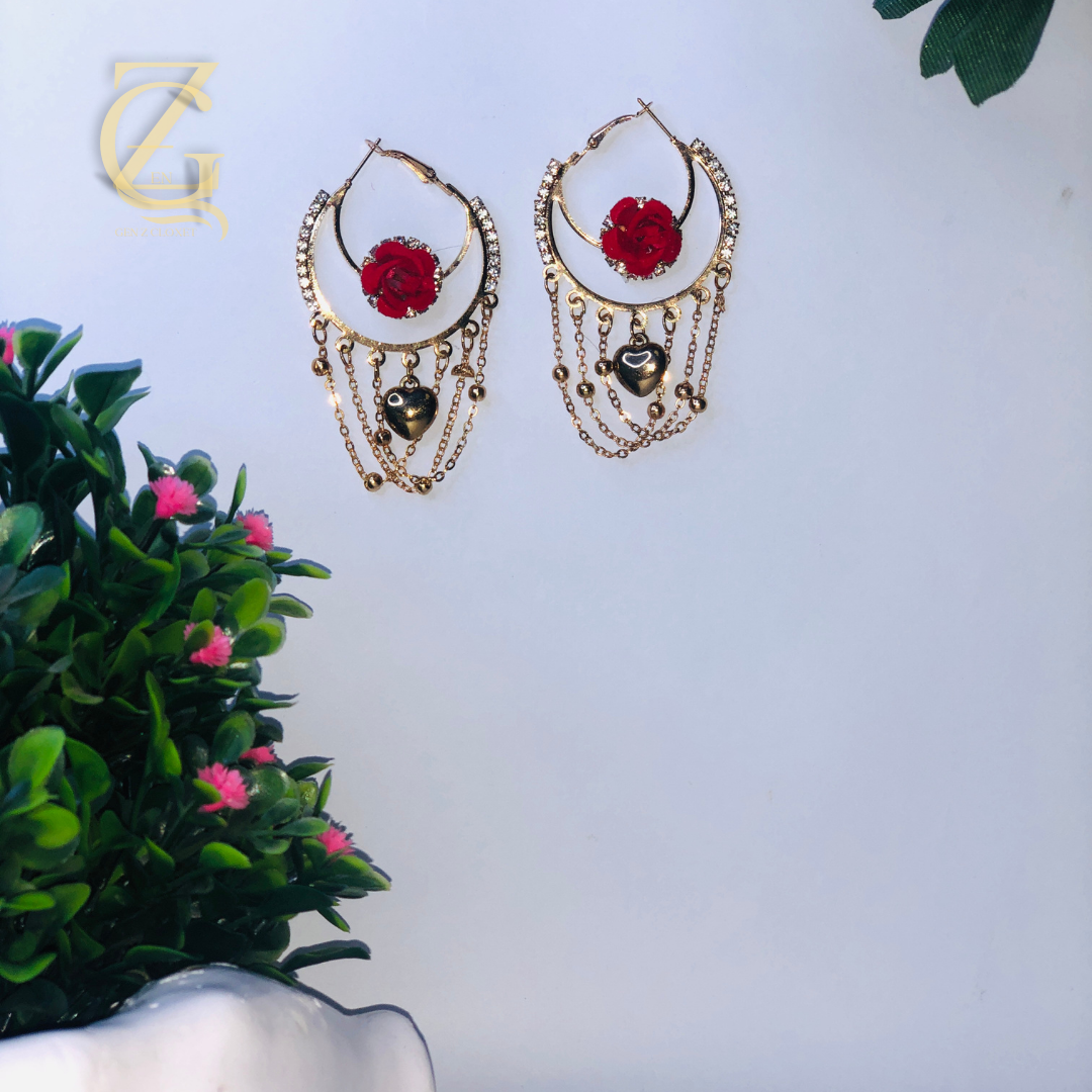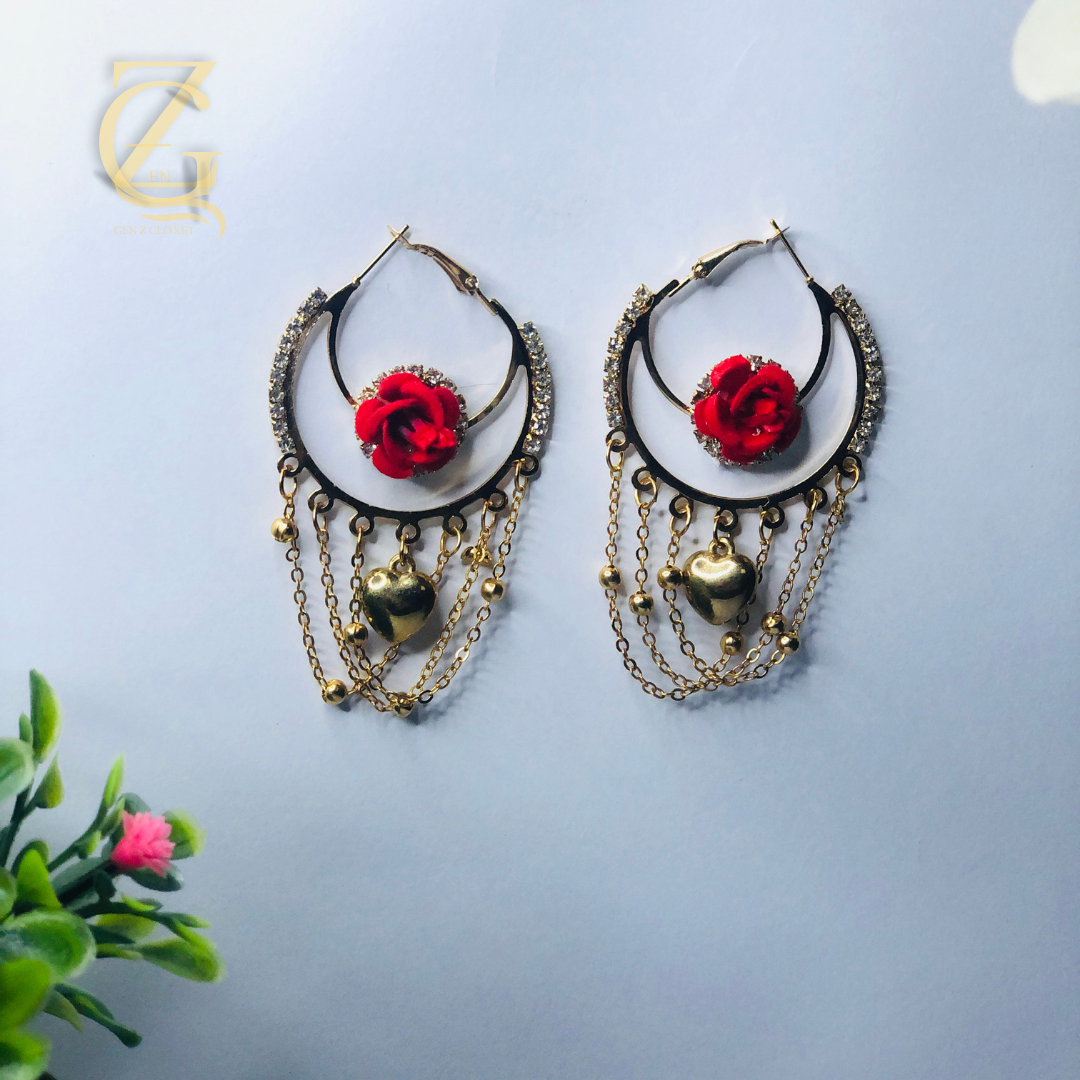 Vintage Style Red Rose & Chain Hoops Fashion Jewelry