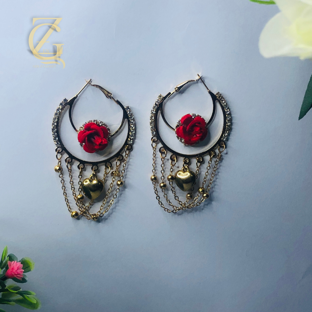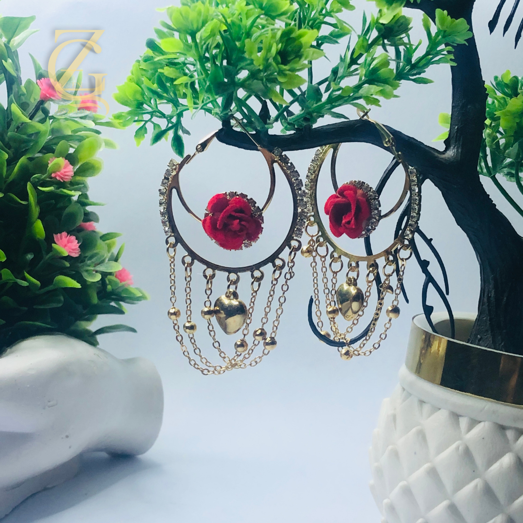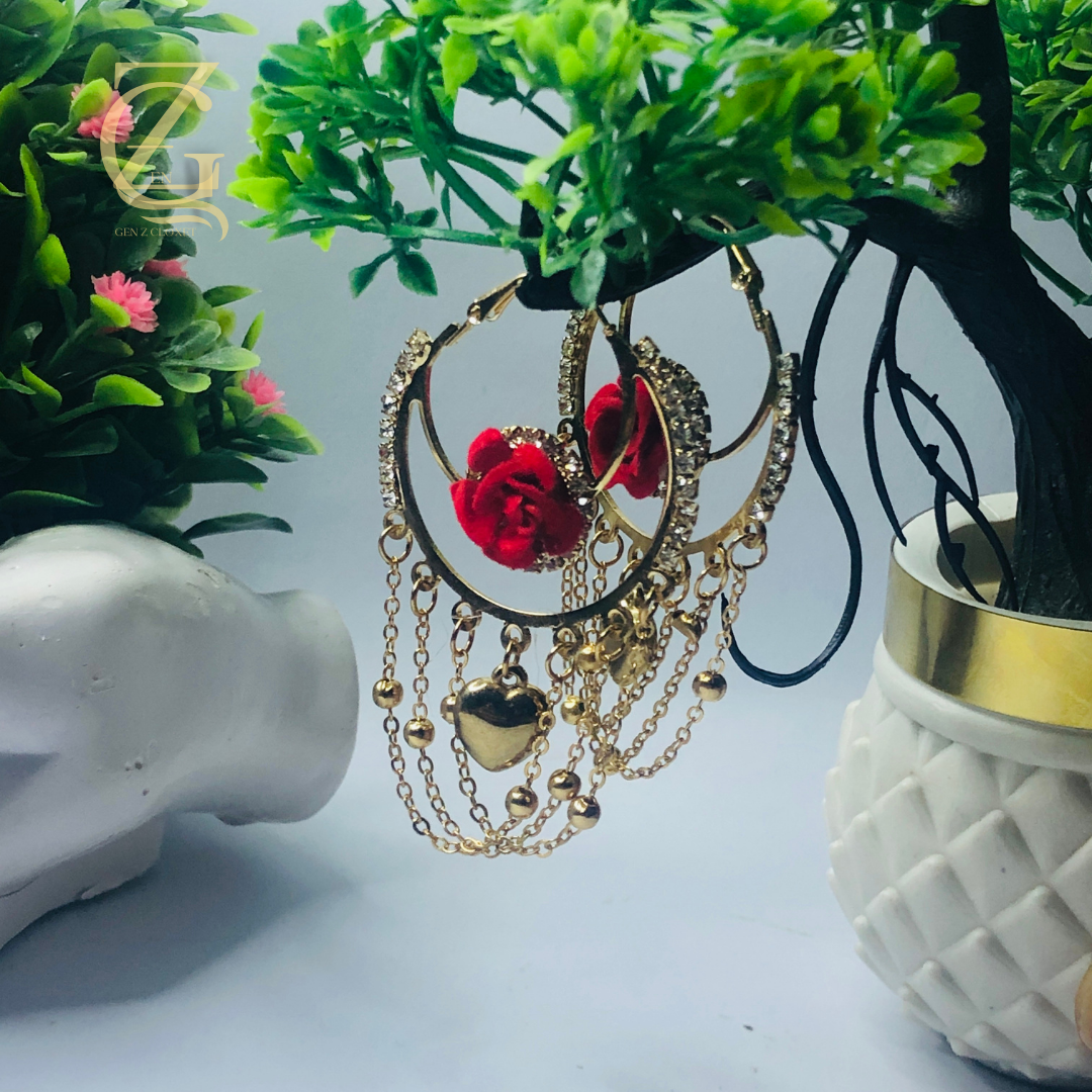 Vintage Style Red Rose & Chain Hoops Fashion Jewelry