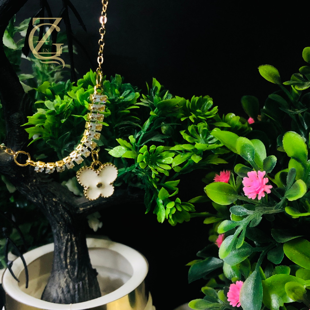 The Gen Z Cloxet White Shell Clover & Baguette Necklace is a delicate and elegant necklace featuring a glossy white shell clover charm paired with sparkling baguette-cut crystal accents. Designed with a fine gold-tone chain, this necklace blends modern luxury with timeless charm, making it a standout everyday accessory.